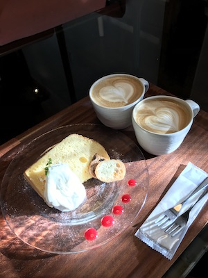 カフェのシフォンケーキ、ラテも